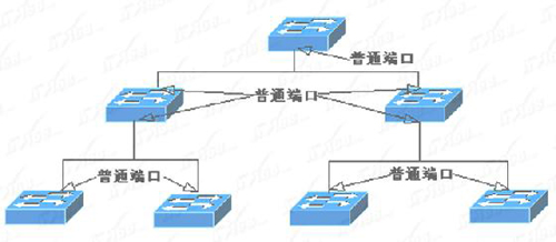 这里的三级并不是说只能允许最多三台交换机,而是从层次上讲只能三个层次。连接在同一交换机上不同端口的交换机都属于同一层次,所以每个层次又能允许几个,甚至几十个交换机级联。层级联所用端口可以是专门的UpLink端口,也可以是普通的交换端口。有些交换机配有专门的级联(UpLink)端口,但有些却没有。如果有专门的级联端口,则最好利用,因为它的带宽通常比普通交换端口宽,可进一步确保下级交换机的带宽。如果没有则只能通过普通交换端口级联了。