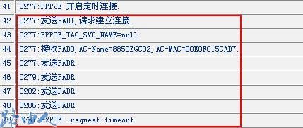 日志中显示路由器发出的PPPOE拨号请求没有回应,这种情况的可能原因有: