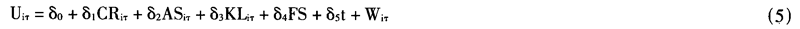 CRiτ:行业集中度指标,界定为每四位码行业销售收入最大的前8家企业销售收入之和占行业总收入的比率,用于衡量市场竞争程度。行业集中度越高,市场竞争程度越低,从而降低企业的生产效率。