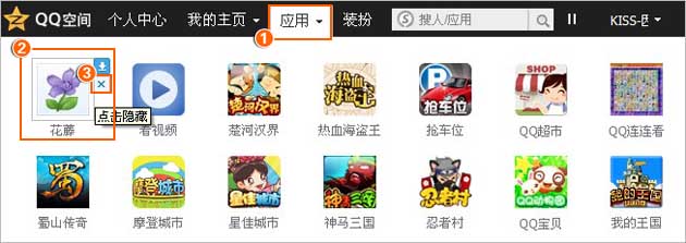 QQ空间已经添加的新花藤应用暂时无法进行关闭/注销操作,若您不想在“应用”或者“个人中心”中显示新花藤挂,请参考以下信息:
